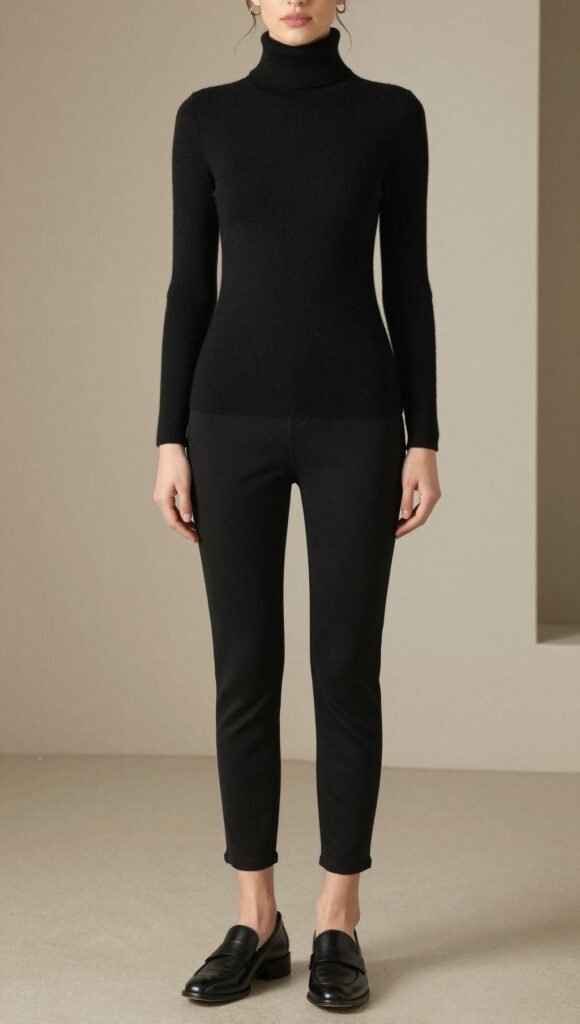Poetry night but make it chic. Pair a slim black turtleneck with cigarette pants.
