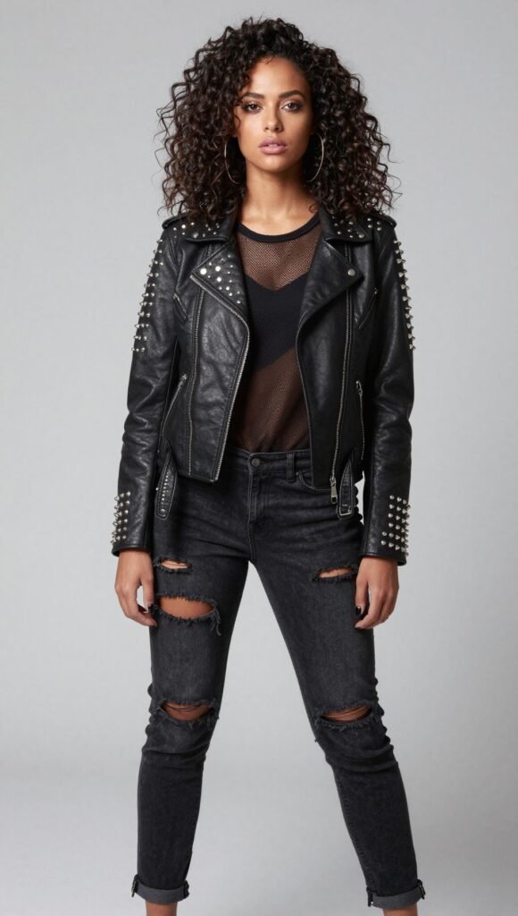 - Accessories: fingerless gloves, safety pins, smoky eyeliner.