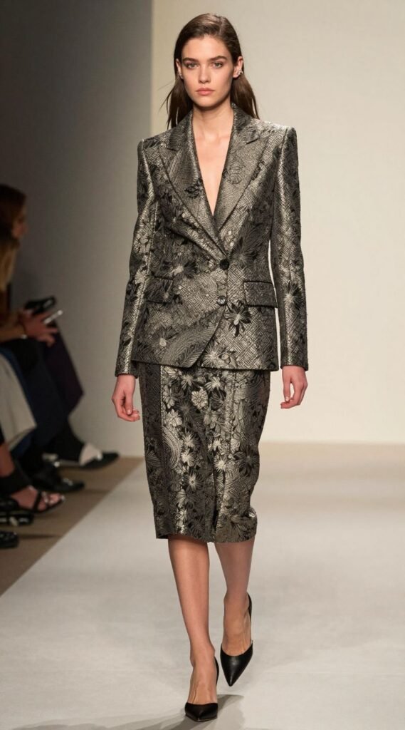 Look for a matching brocade blazer and pencil skirt or A-line skirt. The fabric itself is the star, so keep the cut classic. Pro tip: Pair it with a simple, solid-colored top underneath to avoid overwhelming the eye. You’ll be serving sophisticated, art-gallery-opening vibes.