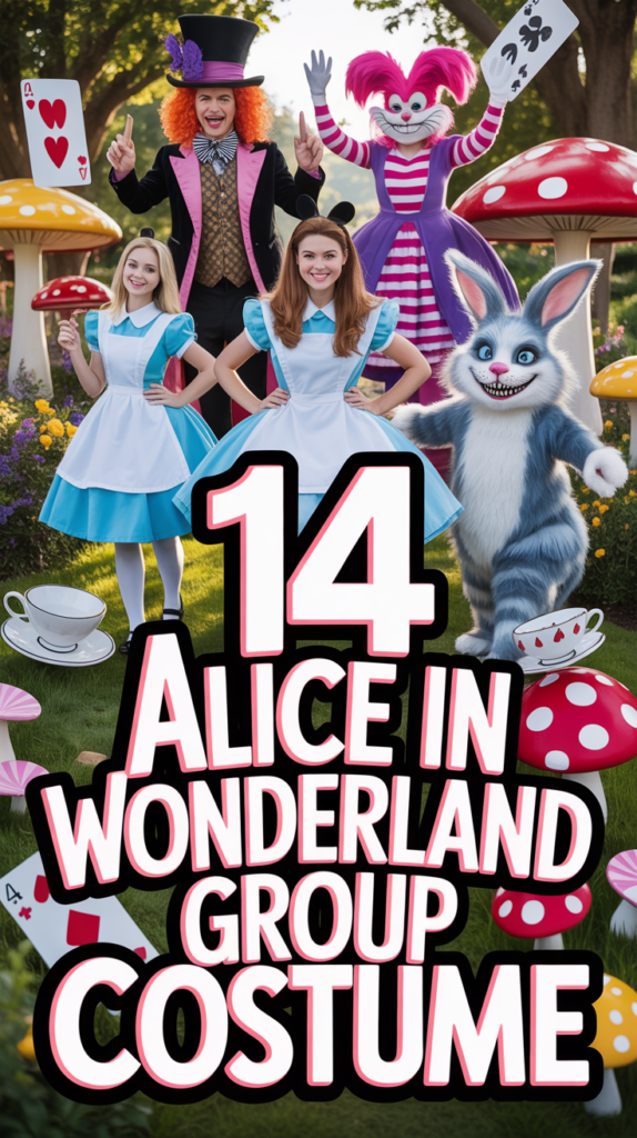 Give us multiple Alices from different eras—classic, punk, cottagecore. Think blue dress, white pinafore, and a black bow remix per person. Style tip: swap shoes—one in Mary Janes, one in platforms, one in cowboy boots. It works because the variations feel intentional and Insta-fresh.