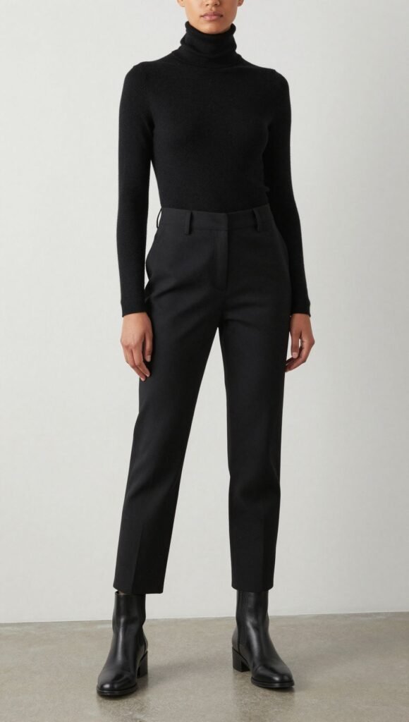 Keep a clean palette: charcoal, cream, black. A crisp button-down seals it.