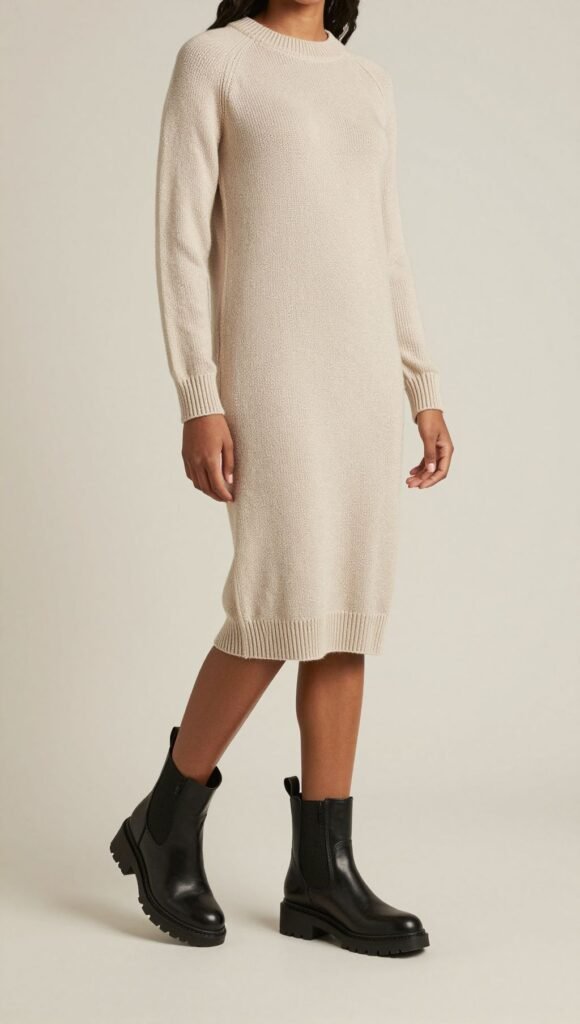2. Chunky Boots With Soft Sweater Dress