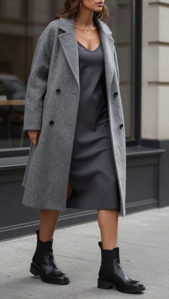 12. Midi Coat Over Slip Dress and Chelsea Boots