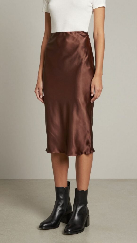 Flirty but unfussy. Pair a silk slip skirt with a fitted tee and sleek leather ankle boots.