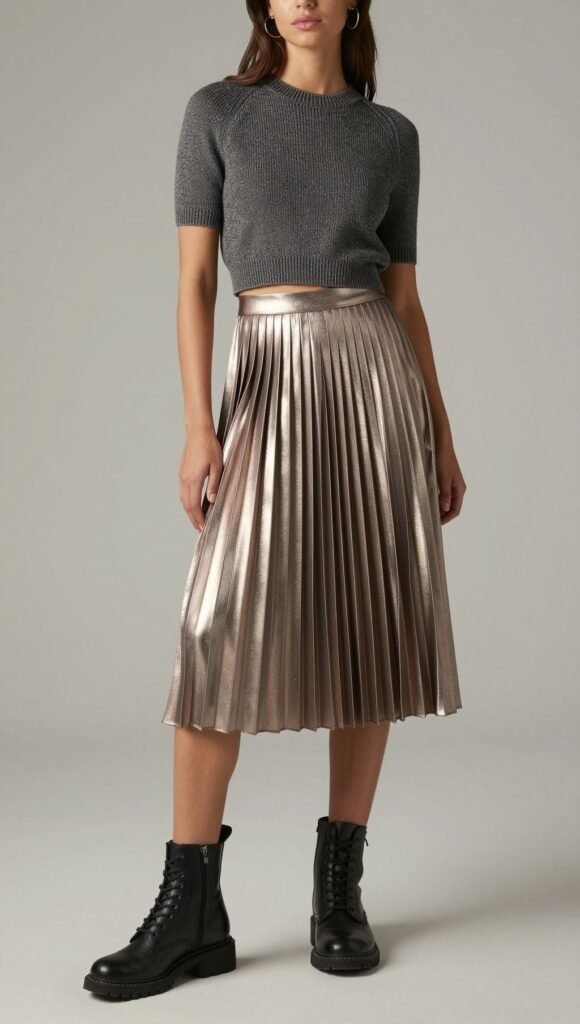 8. Pleated Midi and Combat Boots