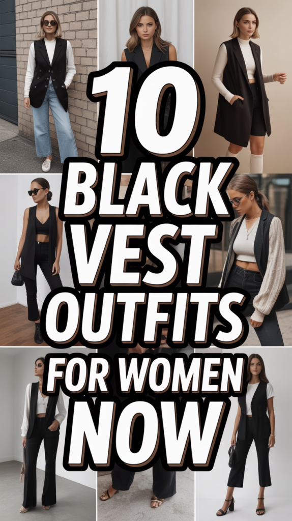 Who knew your gym gear could look this good? Pair your comfiest black leggings with a stylish crop top or a fitted tank. Then, and this is where the magic happens, layer the black vest over it. It instantly elevates the athleisure look from “just ran errands” to “fashionably active.” Finish with your favorite chunky sneakers and a sleek crossbody bag. You’re basically saying, “Yes, I work out, but I also understand aesthetics.”