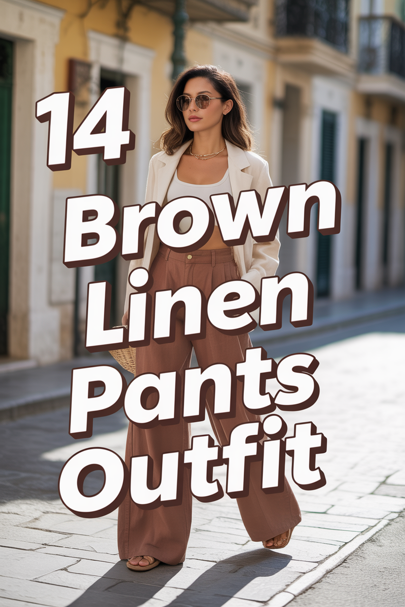 Take your linen from the street to the sand. Use your brown linen pants as a chic cover-up by wearing them over a bright bikini top. A wide-brimmed hat protects your face while making you look like a vacation pro. Pro tip suggests leaving the pants unbuttoned at the beach for ultimate comfort. This outfit ensures you are ready for a beachside lunch at a moment’s notice.