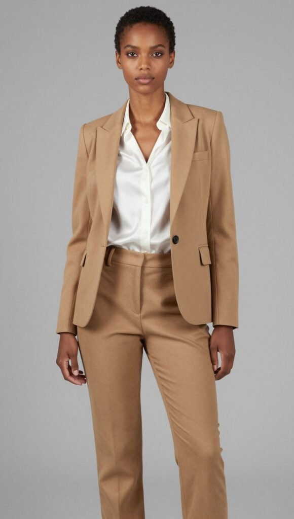 Styling tip: Keep jewelry minimal—tiny hoops and a slim watch. It works because the warm neutral reads luxe and effortless.