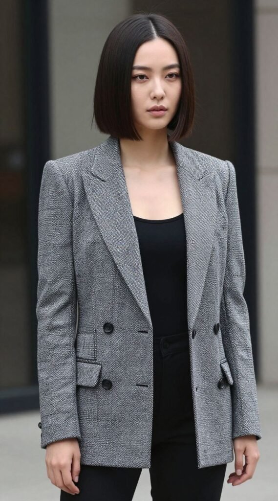 Who said bobs are a no-go for round faces? A blunt bob, hitting just at or below the jawline, paired with a deep side part, is pure magic. The blunt cut adds structure and edge, while the side part creates instant asymmetry, breaking up the symmetry of a round face.