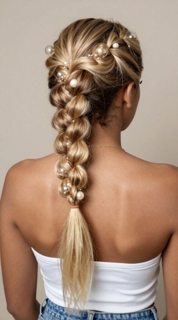 Feeling a bit adventurous? The bubble braid is your fun, quirky friend. Start with a ponytail, then secure sections down the length with small elastics, gently pulling each section to create “bubbles.” It’s an unexpected twist that’s super trendy and keeps all your hair off your shoulders. This look is pure Instagram gold and totally unique.