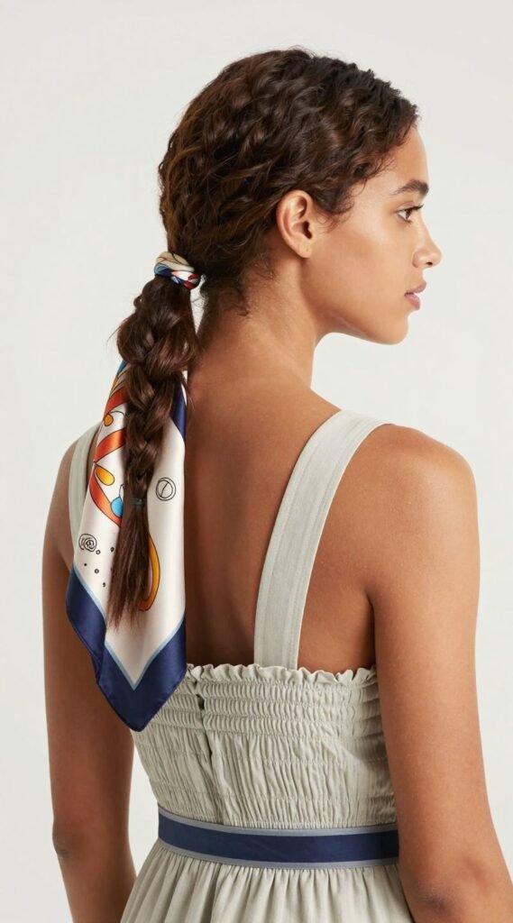 Sometimes, all you need is a little extra something. A cute silk scarf woven into a braid or tied around a low ponytail elevates your look instantly. Choose a scarf that complements your dress’s color or pattern. This adds a pop of personality and keeps your hair neatly styled, framing your face beautifully.
