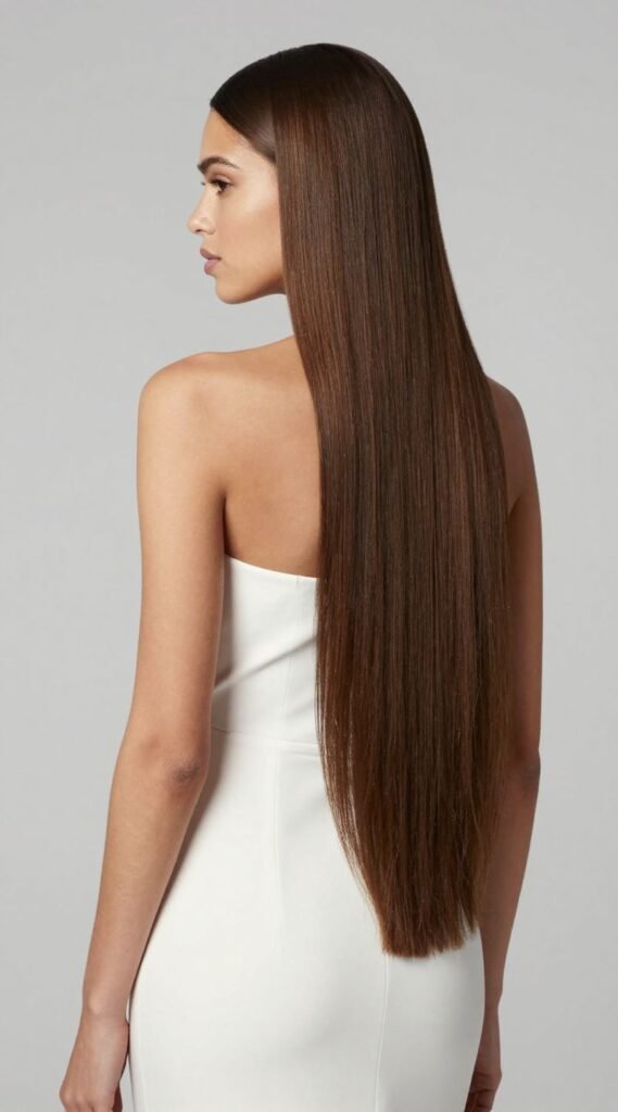 Sometimes, the simplest approach is the most striking. If you have long, straight hair, embrace its natural elegance. Use a flat iron for a super sleek finish and a shine serum to make it gleam. Let it fall down your back, leaving your shoulders completely bare. This sophisticated choice lets the clean lines of your dress truly stand out.