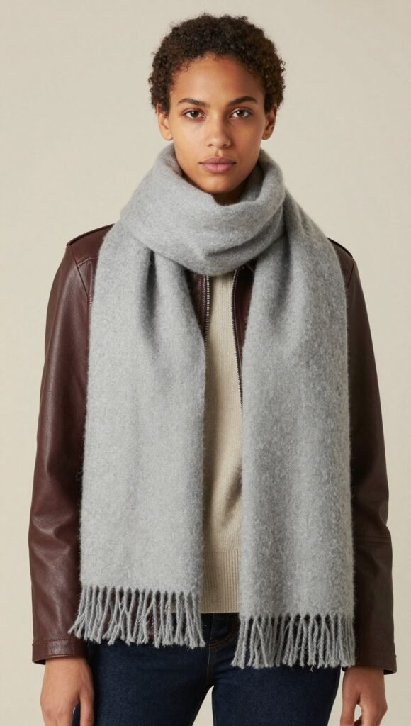 Sometimes, the simplest way is the best way. Any medium-sized, soft rectangular scarf works here. Pair it with a leather jacket, a cozy sweater, or even a simple t-shirt and blazer. Fold the scarf in half lengthwise, then drape it around your neck. Pull the loose ends through the loop created by the fold. Adjust for snugness or looseness. It’s timeless, effortlessly chic, and adds a polished touch to any outfit, keeping you cozy without the bulk.