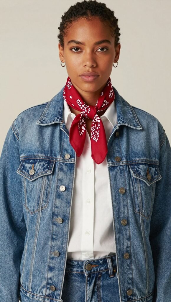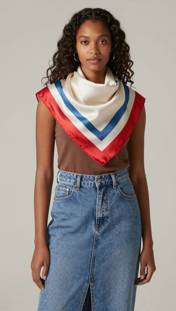 Yeehaw, but make it fashion. A classic bandana-style square scarf is perfect here. Pair it with a denim jacket, a crisp white button-down, and some vintage-inspired jeans. Fold the square scarf into a triangle, then roll it up from the pointed end towards the folded edge. Tie it snugly around your neck, leaving the knot at the front or slightly to the side. It’s effortlessly cool, a little bit rebellious, and adds a rugged-chic vibe to any casual look.