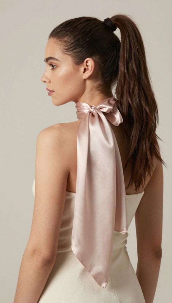 Your ponytail just got a serious promotion. A longer, narrower silk scarf or a folded square one works best. This looks amazing with a sleek high ponytail, a messy bun, or even at the end of a braid. Simply tie the scarf around the base of your ponytail or bun. Let the ends flow freely for a dramatic effect, or tie a cute bow. It instantly elevates a basic hairstyle and makes you look put-together, even if you woke up five minutes ago.