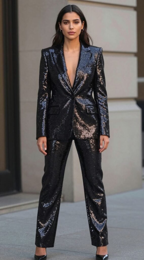5. Power Suit with a Party Twist