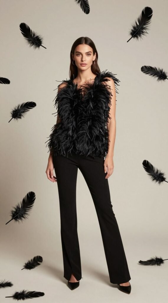 Try a feather-trimmed top with tailored pants or a feather skirt with a simple cami. A little goes a long way here. Pro tip: Balance the extravagance of feathers with sleek hair and minimal makeup. You’ll look whimsical and fashion-forward, like a fabulous bird ready to take flight into the new year.