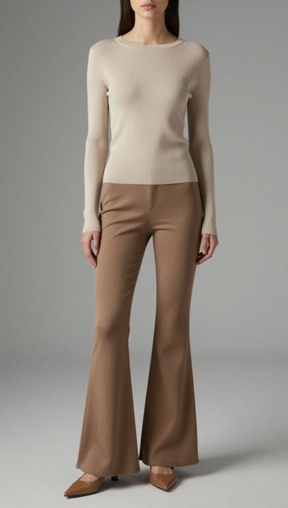 Why it works: Balanced top and micro-flare create proportion without bulk.
