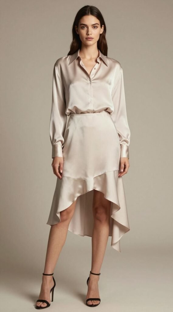 For those who like to march to the beat of their own drum, an asymmetrical hem offers a modern, edgy twist to a plain silk blouse. It’s unexpected, stylish, and instantly makes your outfit look more intentional. Why be symmetrical when you can be fabulous?