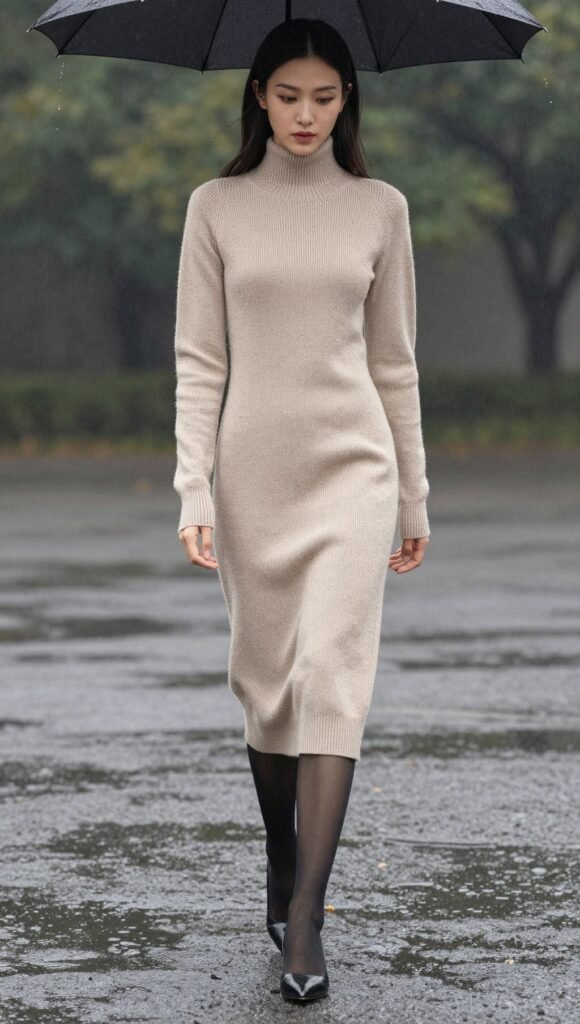 Layer it over sheer tights and team it with stylish knee-high boots (waterproof, naturally). Add a statement belt to cinch the waist and define your figure. It’s cozy, chic, and completely immune to the weather’s mood swings.