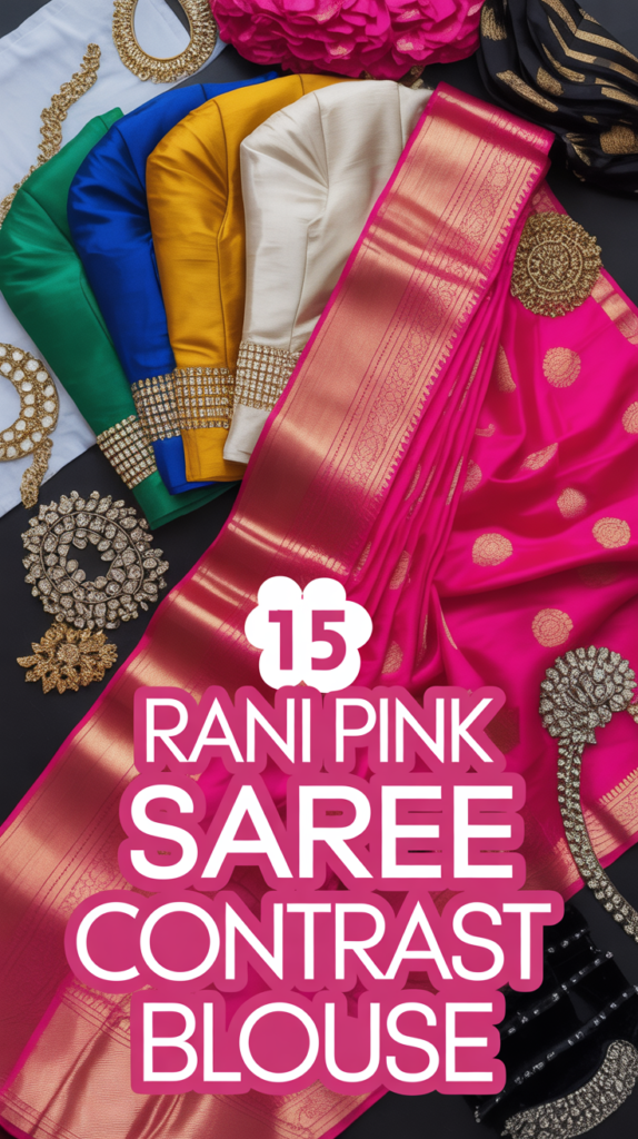 Let’s play color matchmaker. Your rani pink saree already serves drama, so the blouse should bring the plot twist. I’m talking contrasts that pop, flatter, and photograph like a dream. Ready to make aunties whisper and friends screenshot?
