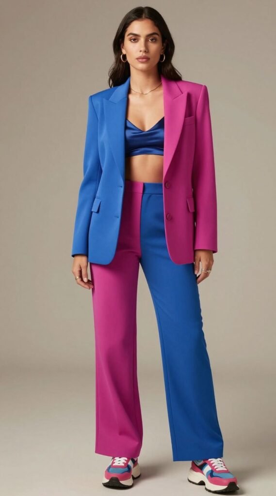Underneath, rock a sleek bralette or a silky camisole. For your feet, bring out the big guns: a pair of chunky designer sneakers with interesting textures or a pop of color. This look is boss-babe energy personified, proving you can be powerful and playful all at once.