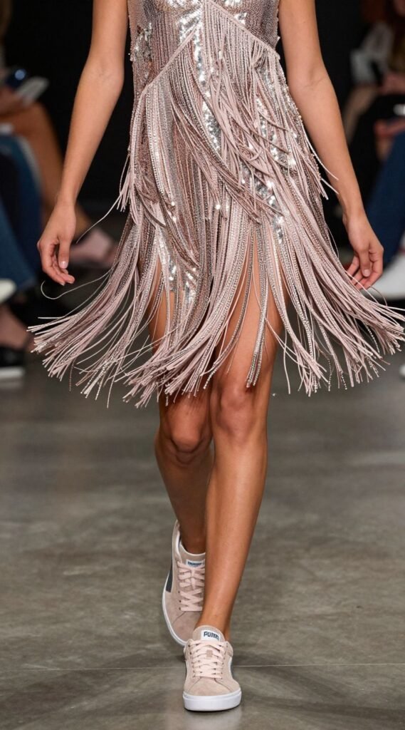 To complement the playful movement, opt for some classic, cool suede sneakers. Think a pair of Puma Suedes, Adidas Sambas, or even some elevated Vans. The texture of the suede adds a touch of casual luxury, perfectly balancing the high-energy fringe. Prepare for compliments every time you shimmy.