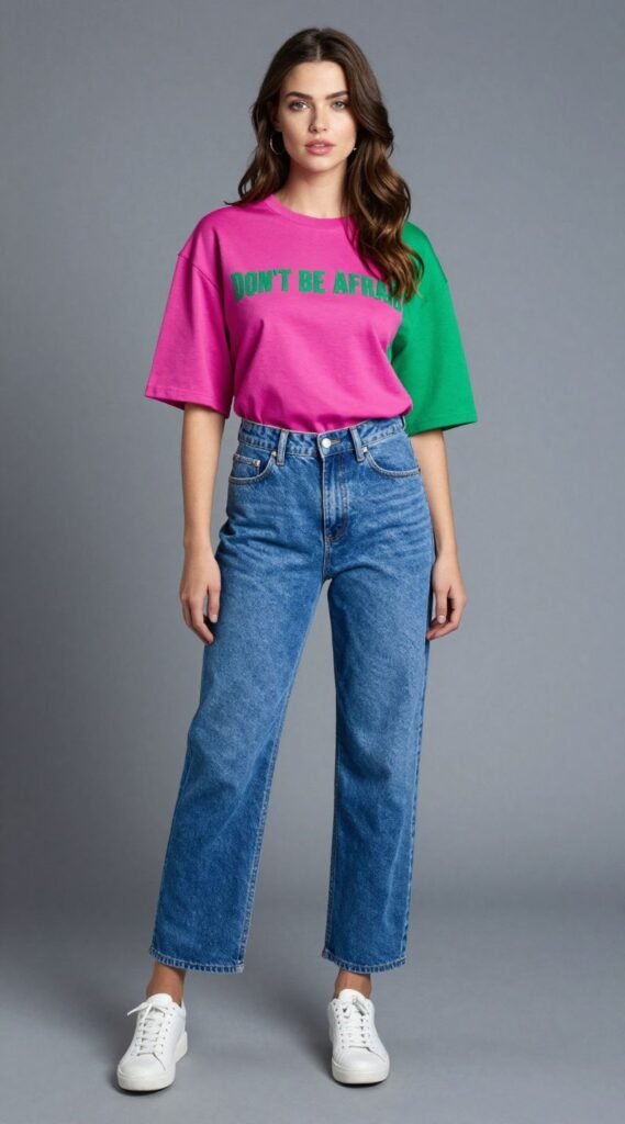 Don’t be afraid to stand out. A vibrant, bold-colored top – fuchsia, emerald green, electric blue – can instantly transform your baggy jeans from casual to statement-making.