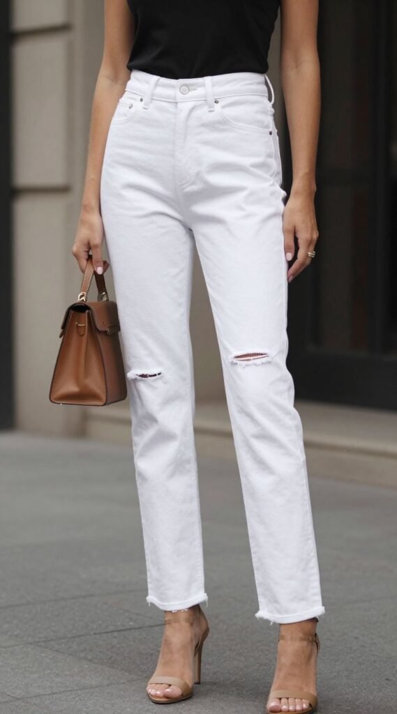 Navigating the urban jungle demands style and comfort. Rock some perfectly tailored white cigarette pants with a sleek black fitted top โ perhaps a sleeveless turtleneck or a well-cut tee. It’s a classic contrast that always works.