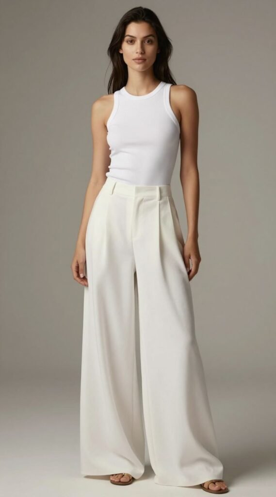 Sometimes, less is truly more. Embrace simplicity with a pair of flowing white palazzo pants and a perfectly fitting simple white or nude tank top. The key here is the quality of the fabrics and the flawless fit.